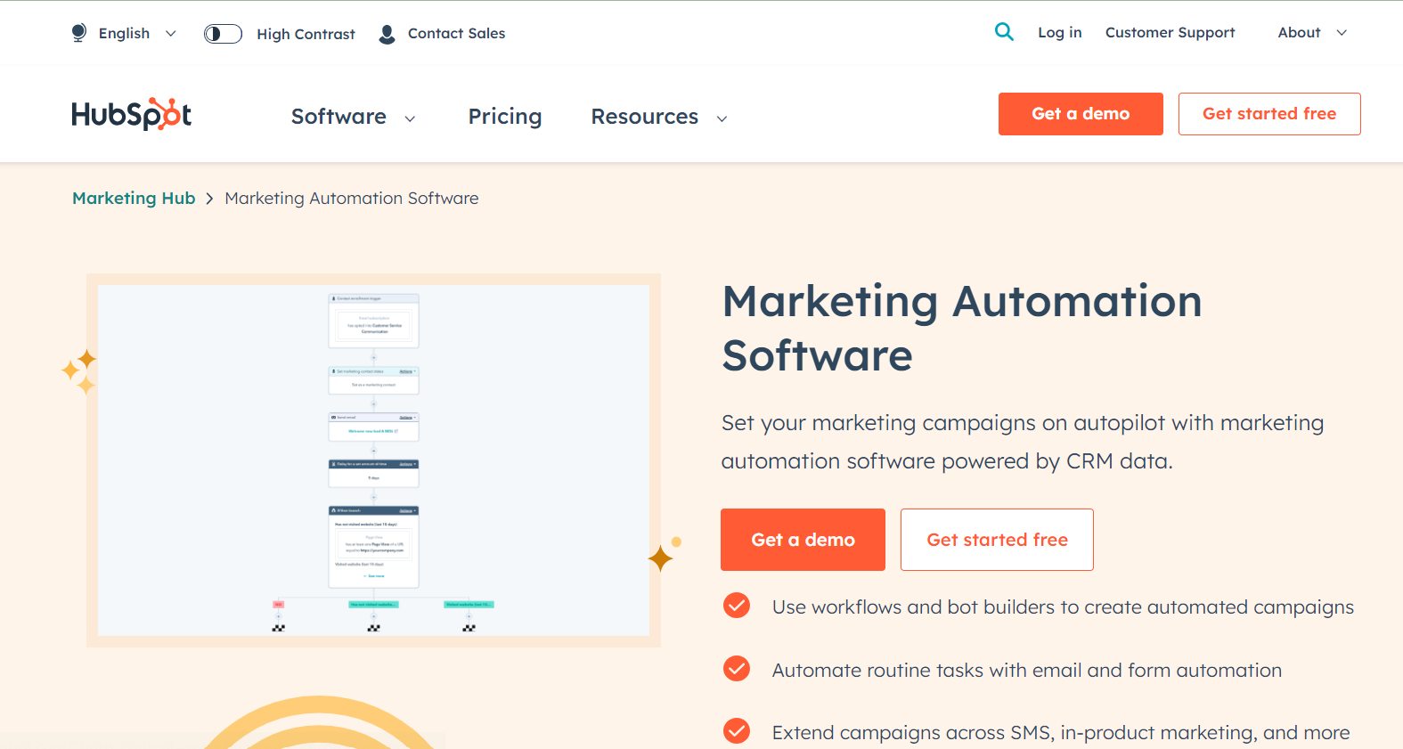 HubSpot offers a comprehensive growth suite that integrates sales, marketing, and support software with their CRM. This integration unlocks numerous automation possibilities that would be challenging with separate tools. HubSpot’s automation marketing functionality includes a user-friendly visual board for creating simple or advanced workflows. Using HubSpot, you can easily set up automated email responses for your contact lists, create advanced rules to deliver personalized emails, support live chat interactions, and much more.